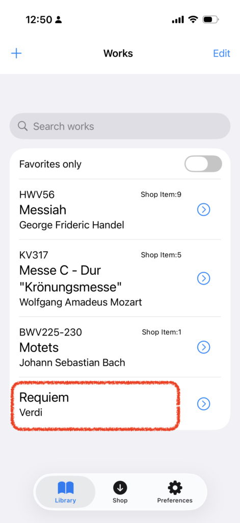 合唱パート練習 には、丁寧に作成されたMusicXML形式の楽譜データにアクセスできるショップが搭載されています。これらの楽譜はすぐに使えるので、編集や設定は不要です。開いて練習を始めるだけです。